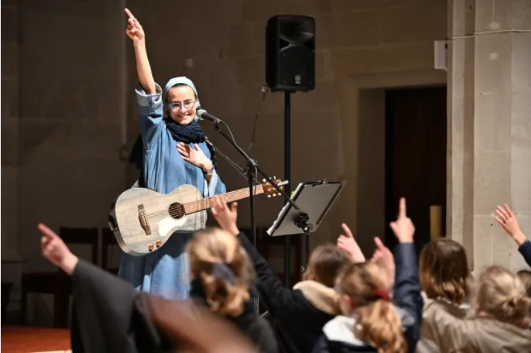 Depuis, sœur Agathe sillonne la France, d’école en école et pour des concerts familiaux. Dans les écoles elle anime des catéchèses musicales et lors des concerts familiaux elle aime asseoir les familles ensemble, pour qu’elles puissent vivre un vrai moment de complicité. Elle aime aussi glisser des chants pour les adultes lors de ses concerts. En trouvant les mots justes, elle n’a pas peur d’aborder des thématiques plus douloureuses comme la mort, ou des mots qui sembleraient trop savants tels que "la grâce". Ce dont elle a particulièrement à cœur c’est de "transmettre l’intériorité aux enfants, le fait qu’ils soient capables de connaître Dieu, de descendre dans leur cœur", confie-t-elle à Aleteia.