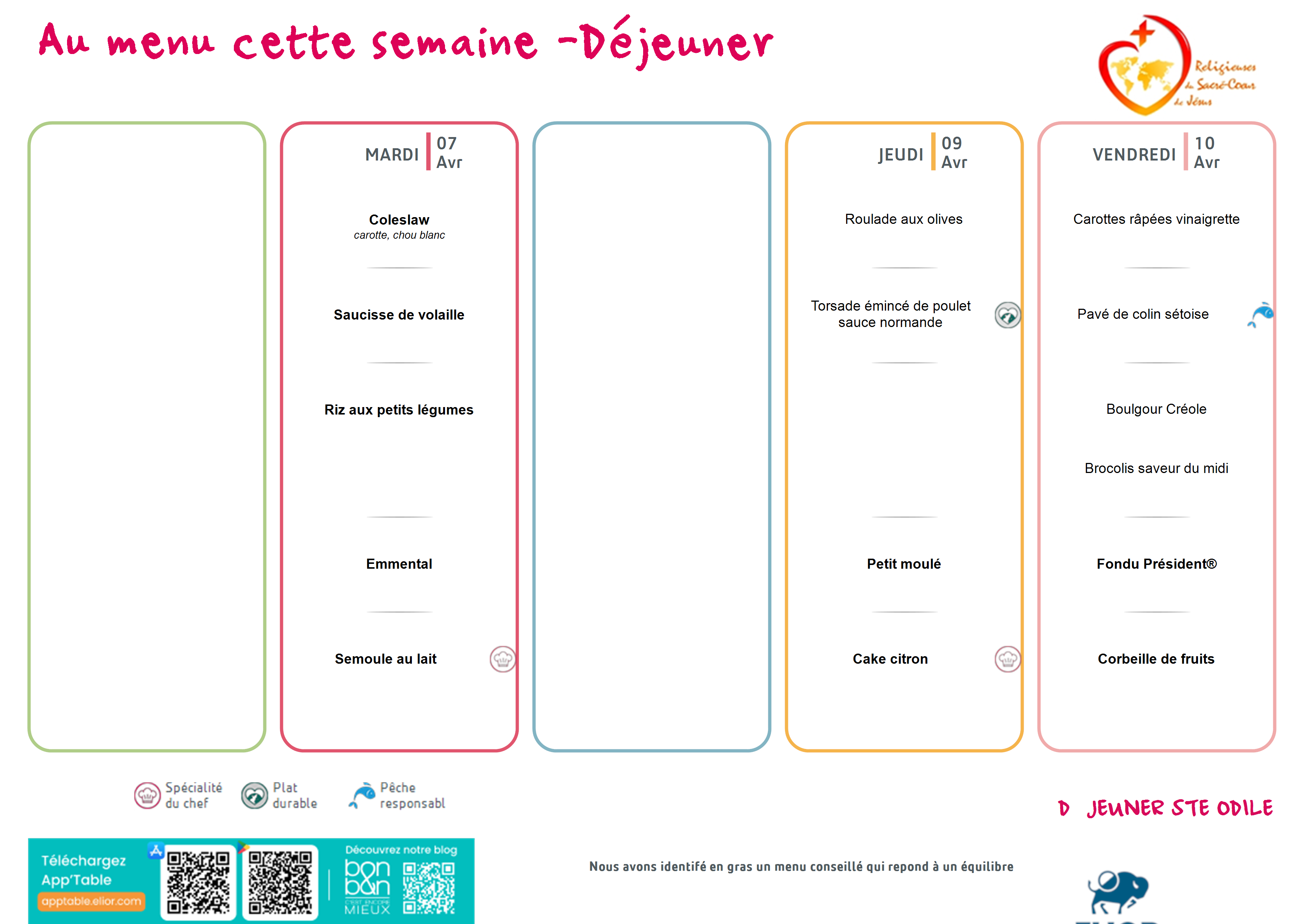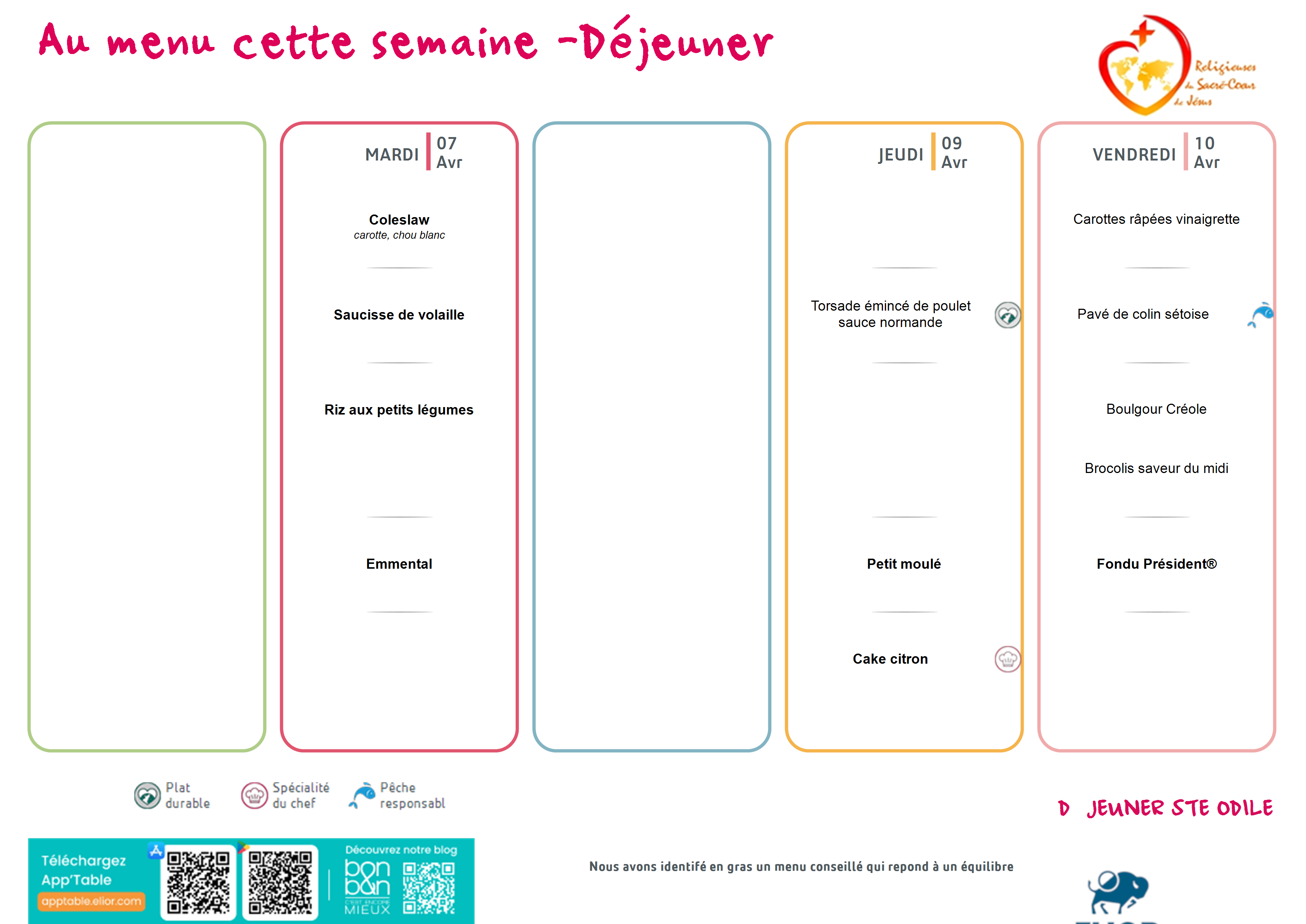 MENUS CANTINES SEMAINE DU 07 AVRIL 2026