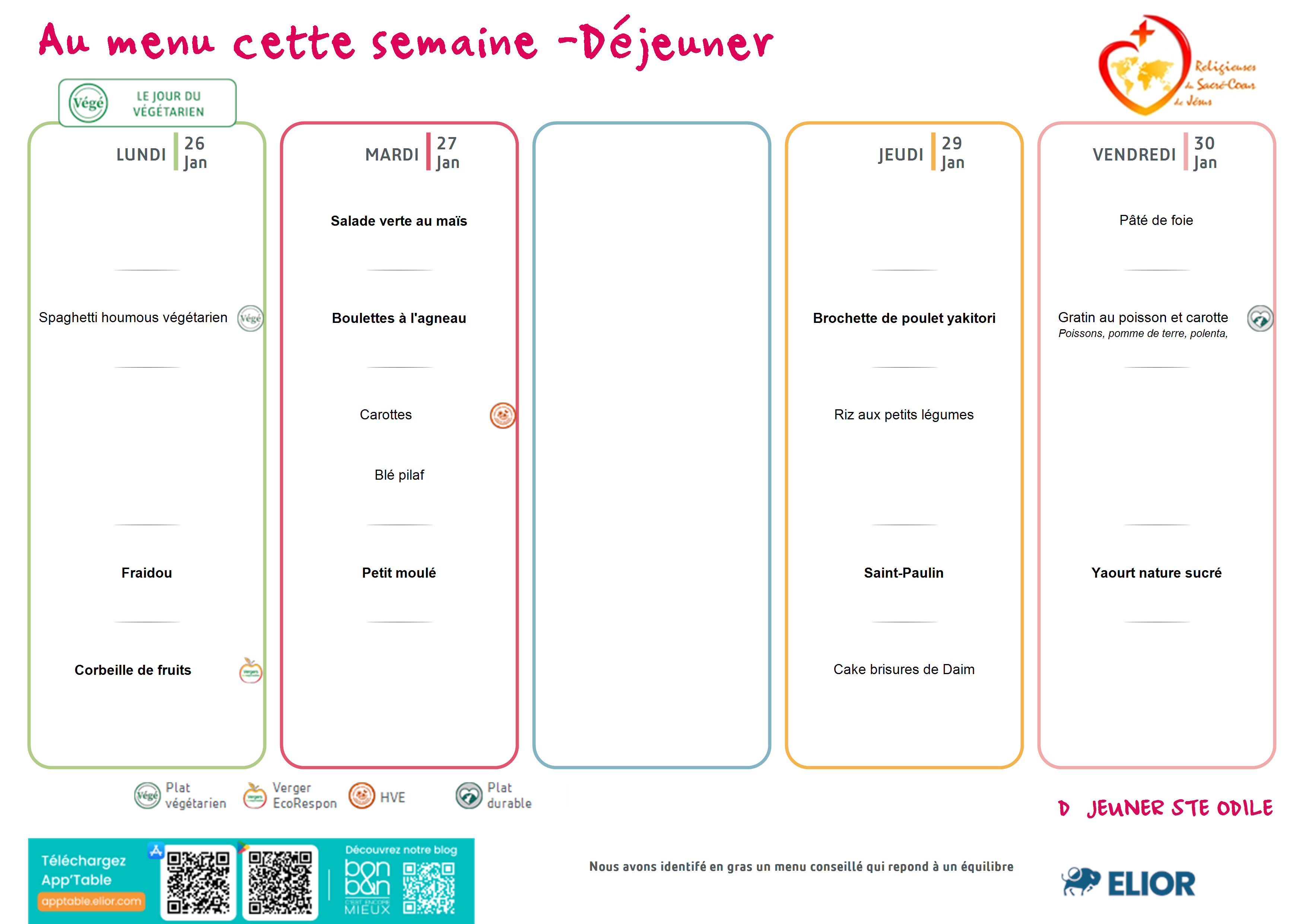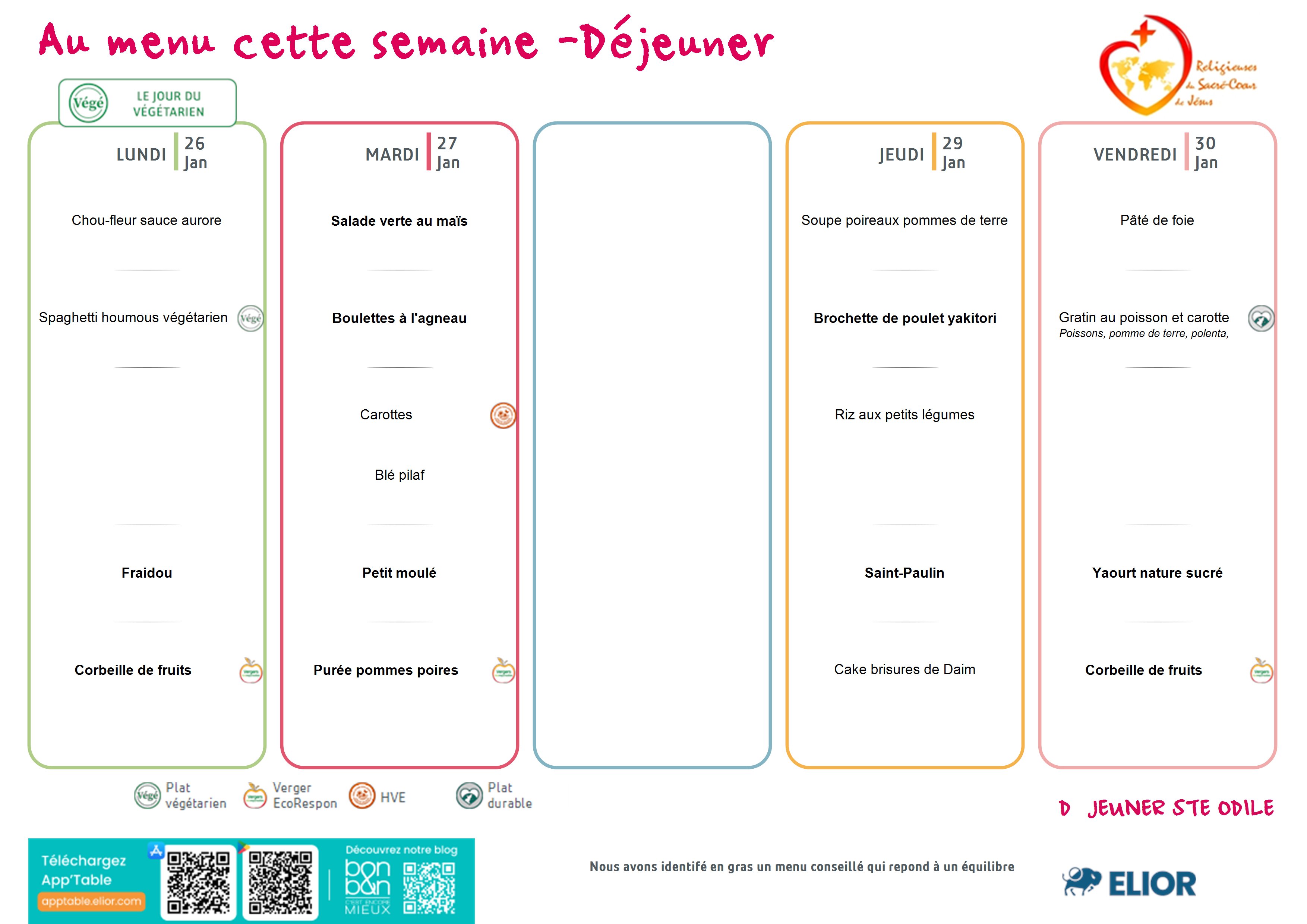 MENUS CANTINES SEMAINE DU 26 JANVIER 2026