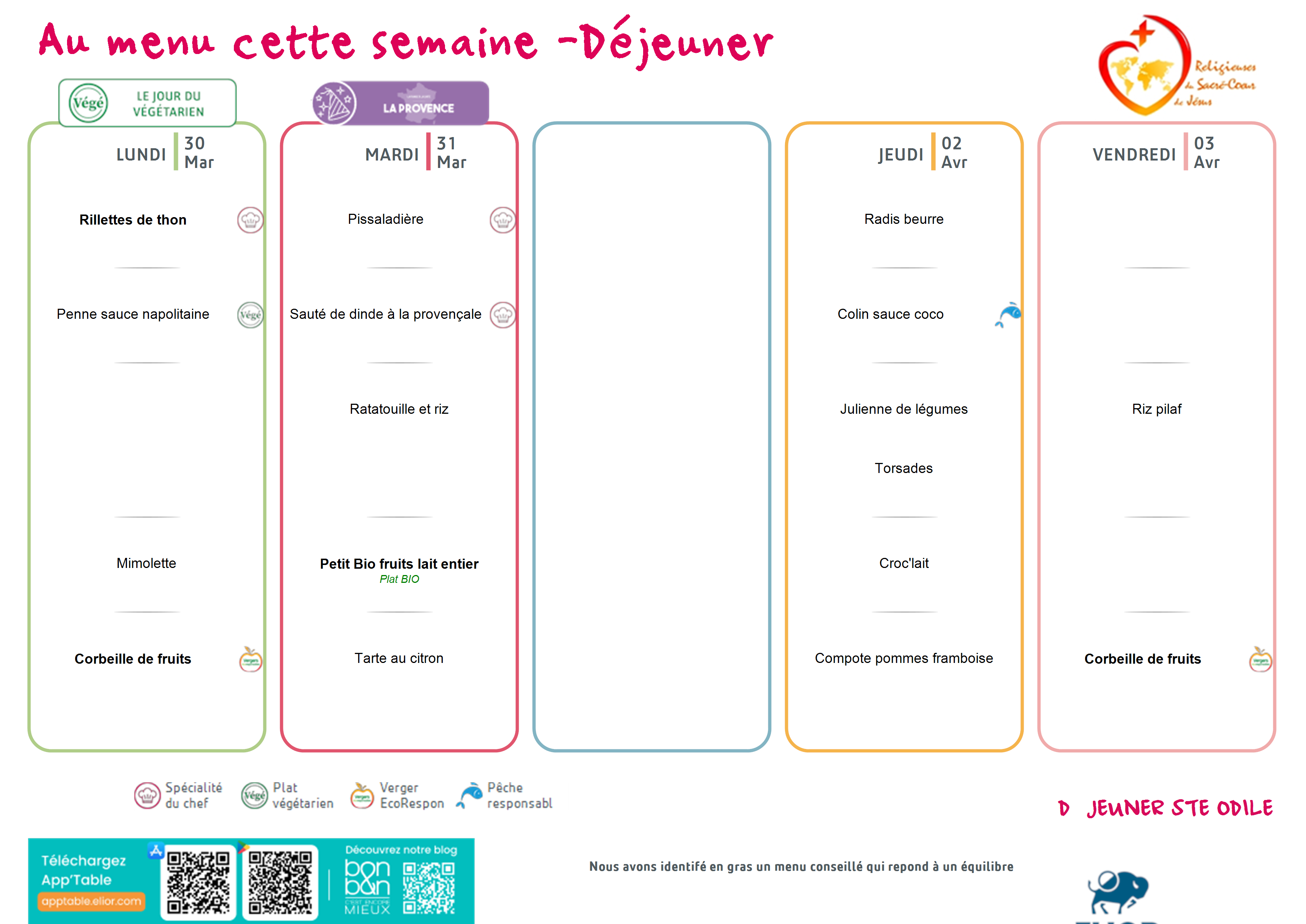 MENUS CANTINES SEMAINE DU 30 MARS 2026